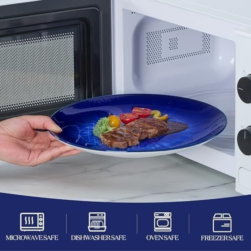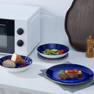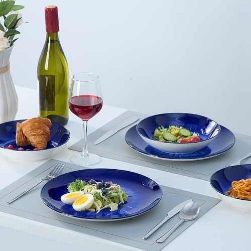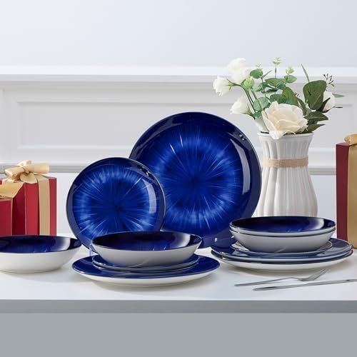 Material: Premium Porcelain, a type of premium LEAD-FREE and NON-TOXIC ceramic, chip-resistance and more sturdy.organic feel. These plate, bowl, dish sets bring to Premium to the table.Easy to Clean – Round 12 pieces dinnerware sets is made of high-heat, durable Porcelain, which is harder and resistant to cracking, and gives the dinner set a premium feel. Our outstanding dinnerware set can be cleaned easily and safely in the dishwasher, and you can use them directly in the microwave